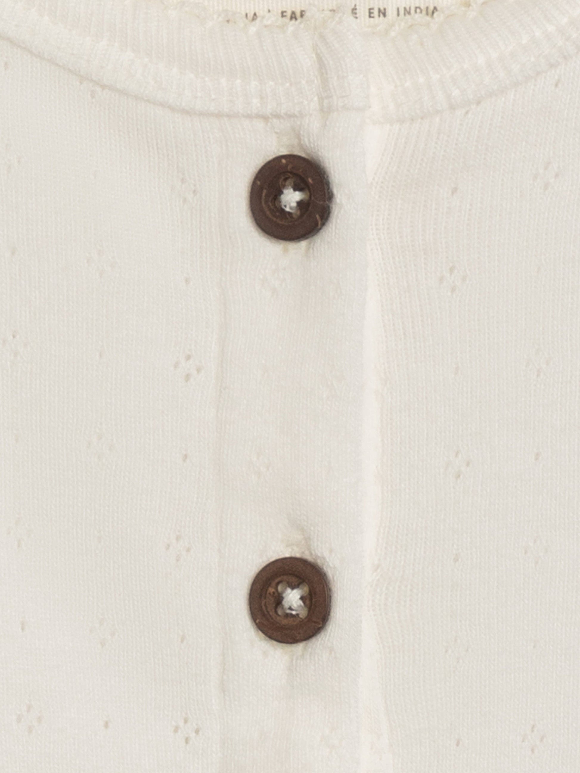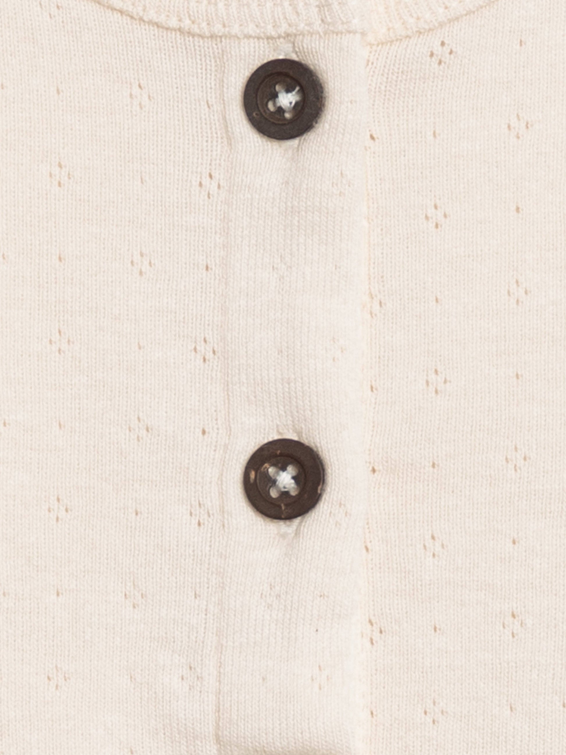 De ideale metgezel voor winderige lentedagen of koele zomernachten, het Clara Pointelle Vest is versierd met houten knopen en een picot-rand voor een elegante uitstraling. Gemaakt van 100% biologisch katoenen pointelle stof Watergebaseerde kleurstoffen die zorgen voor langdurige kleurhelderheid en duurzaamheid Duurzaam verkregen en ethisch geproduceerd Van nature hypoallergeen
